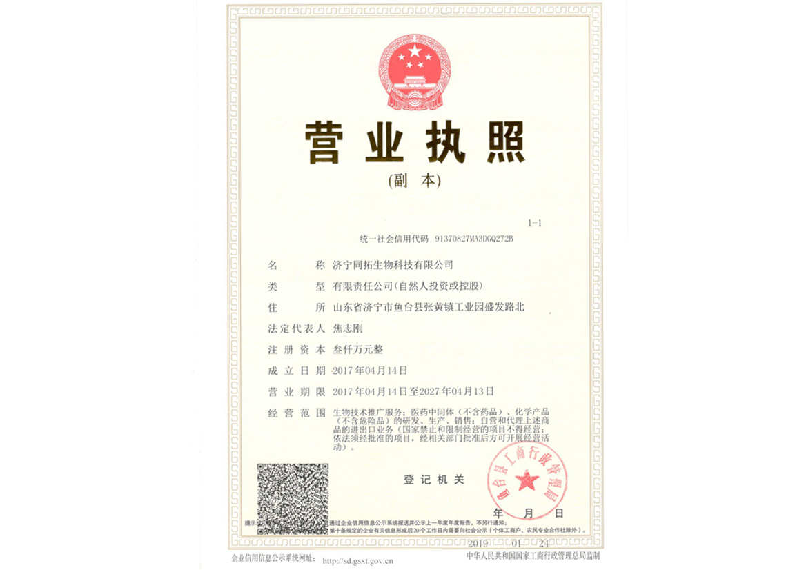 濟(jì)寧同拓生物科技有限公司成立于2017年,地處省級(jí)化工園區(qū)--魚臺(tái)縣化工產(chǎn)業(yè)園盛發(fā)路北,總投資1.3億,公司占地面積108畝,項(xiàng)目分兩期建設(shè)。項(xiàng)目一期,注冊(cè)資金為3000 萬元,占地約40畝,主要生產(chǎn)兩個(gè)產(chǎn)品(吡唑環(huán),氟蟲氰中間體,300噸/年、K胺,康寬中間體,200噸/年),目前我司與蘇州開元民生科技股份有限公司雙方達(dá)成戰(zhàn)略合作意向,雙方確定在同拓生物建設(shè)年產(chǎn)3000噸藥用中間體項(xiàng)目。